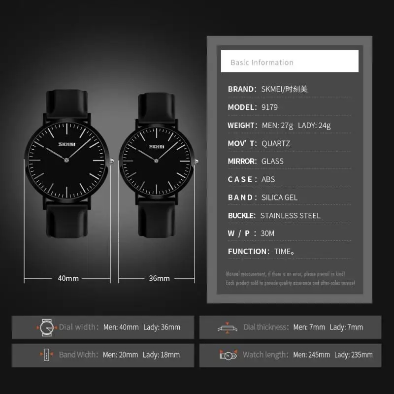 Часы наручные SKMEI женскиемужские, роскошные Брендовые повседневные водонепроницаемые для влюбленных, 9179