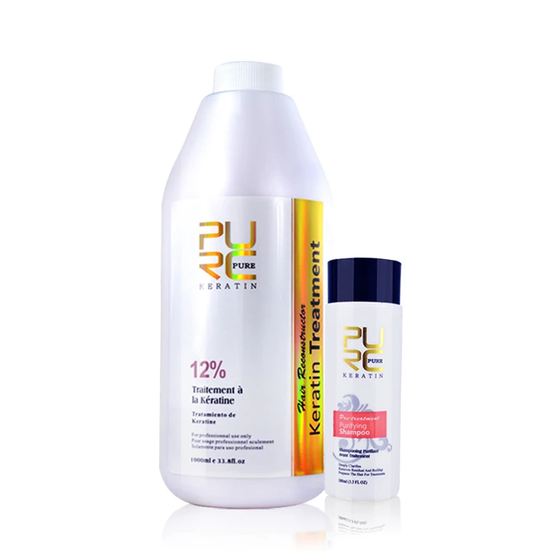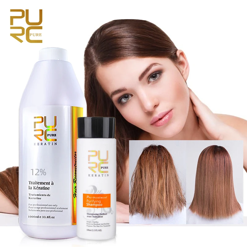 Средство для выпрямления волос PURC, 12% формлен, шоколадное Кератиновое лечение, очищающий шампунь, набор 1000 мл, чистый