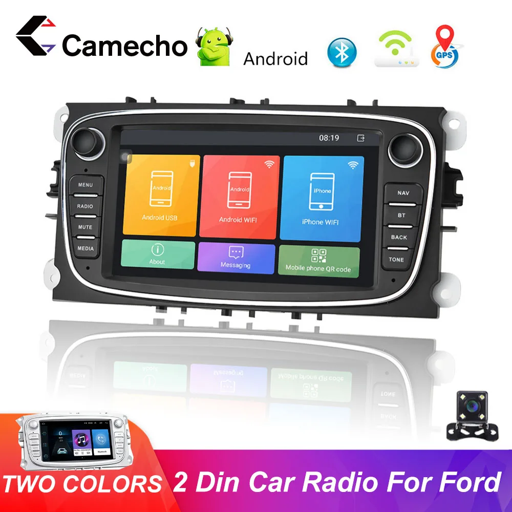 Camecho Android автомобильное радио 2 Din закаленное стекло 7 дюймов GPS мультимедийный плеер для Ford Focus mk2 Mondeo C-MAX S-MAX Galaxy II Kuga