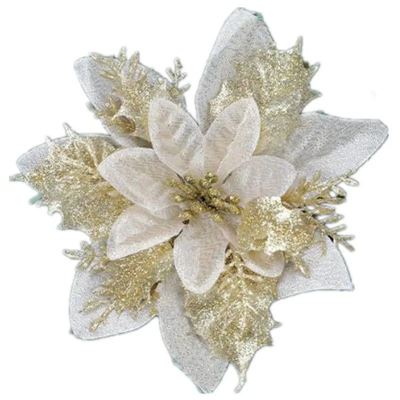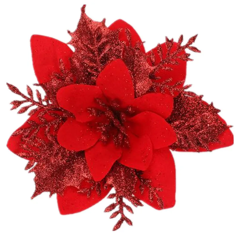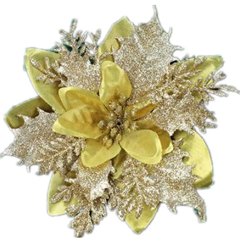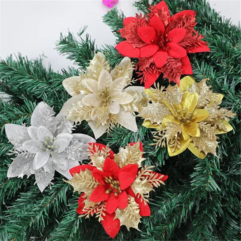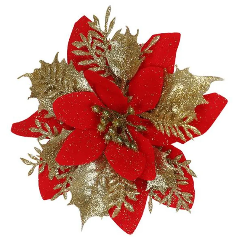 20 шт. шелковые пуансетийские Цветочные головки с порошком 5,5 дюйма для украшения рождественской елки, цветы