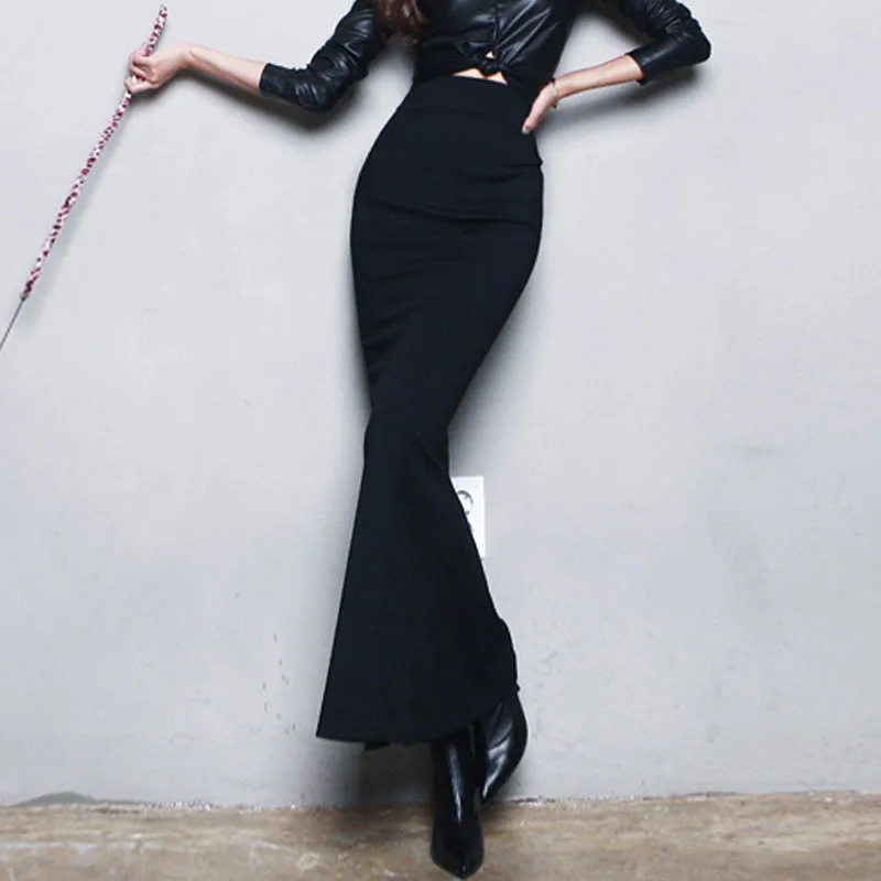 Женская офисная юбка COIGARSAM, однотонная Длинная черная юбка с высокой талией
