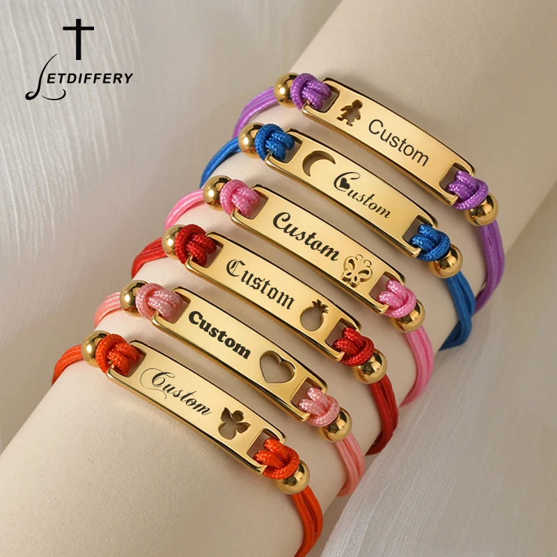 Индивидуальные браслеты с сердечками, звездами, луной, красной нитью letdiffy для влюбленных, нержавеющая сталь, гравировка имени, дата, Женские Ювелирные изделия на заказ