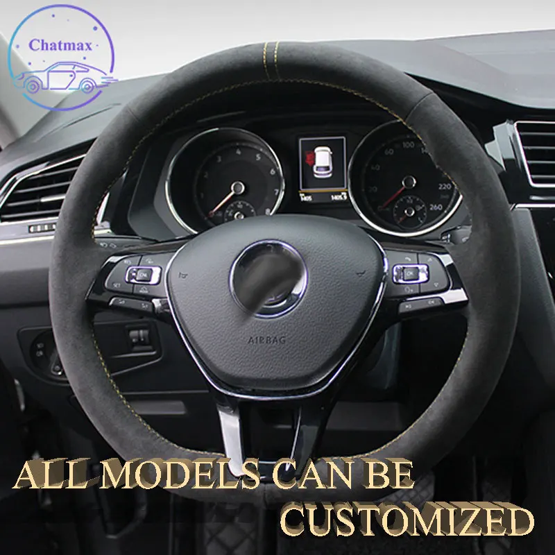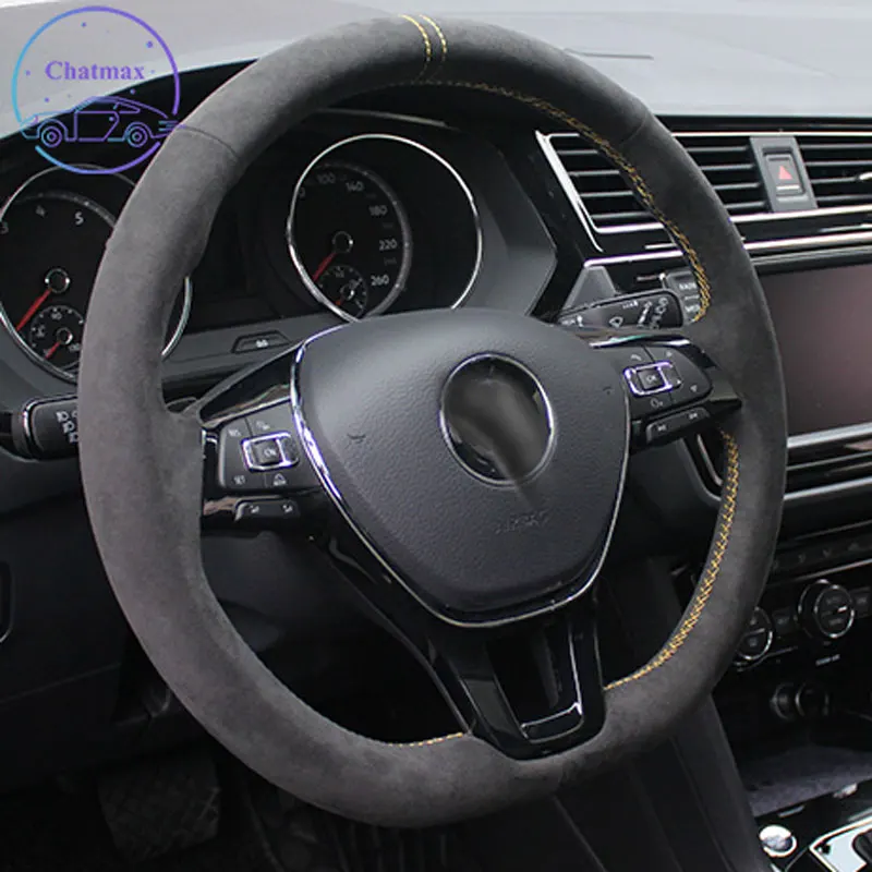Вышивка Alcantara чехол рулевого колеса автомобиля для VW Golf 4567 Tiguan Handsewing держатель Поддержка пользовательских спортивный текстура