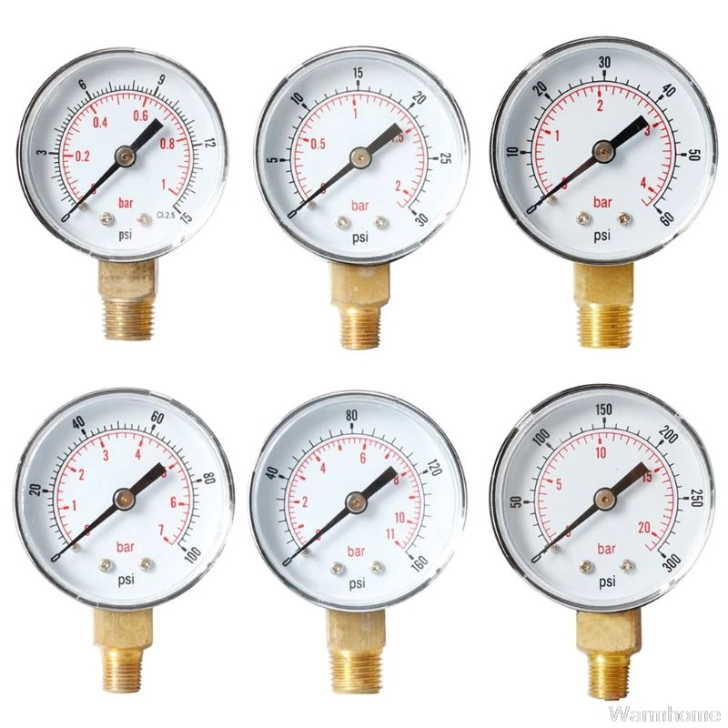 Манометр 52 мм 14 "BSPT вертикальный 15,30, 60100150300 PSI бар Нижнее крепление N06 20 Прямая поставка