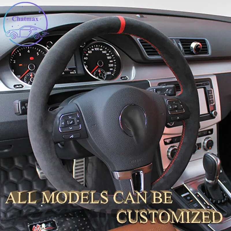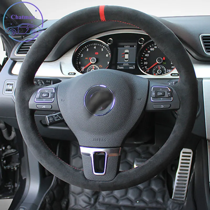 Вышивка из алькантары чехол рулевого колеса автомобиля для VW CC, Sharan, POLO, Touareg, Ручное шитье, держатель, специальная Спортивная текстура