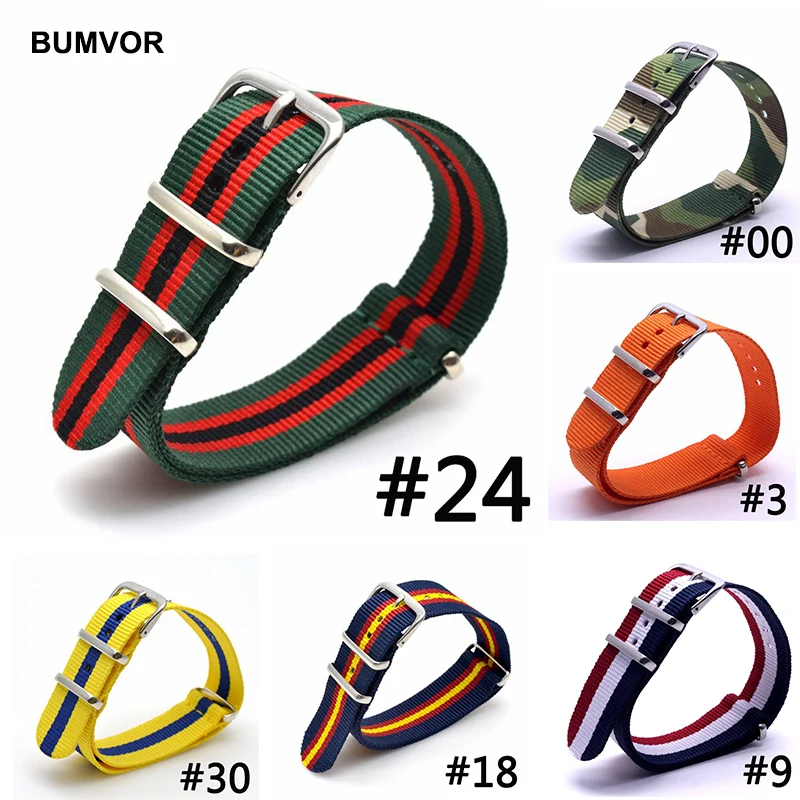 Нейлоновый армейский ремешок Bumvor для наручных часов, спортивный тканевый цветной браслет из нейлона, 16 мм 18 мм 20 мм 22 мм 24 мм