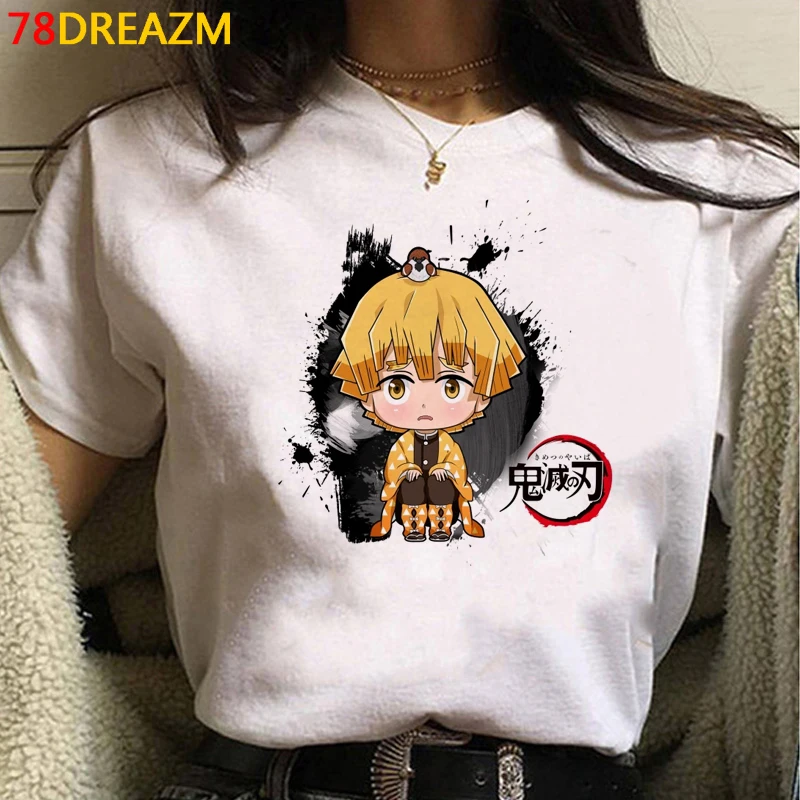 Футболка женская с милым японским аниме Demon Slayer, забавный топ ...