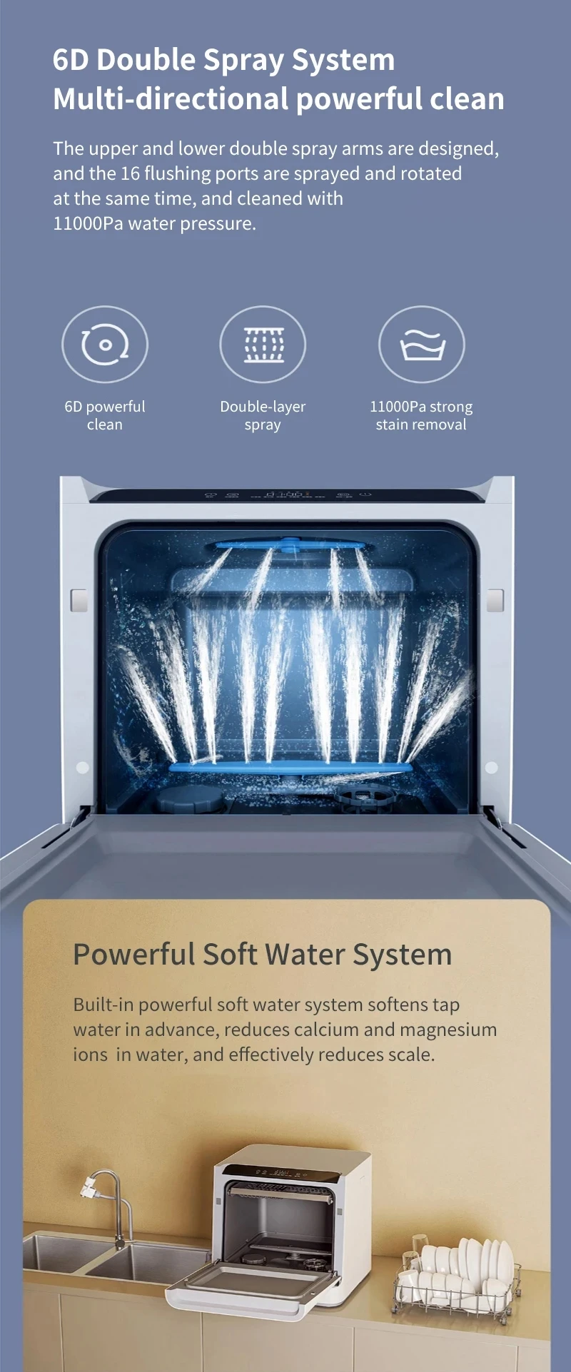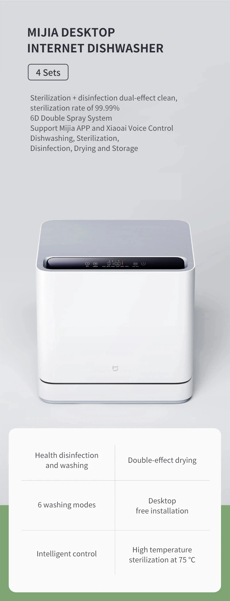 Умная посудомоечная машина Xiaomi Mijia, настольная посудомоечная машина для двойной системы распыления, ультразвуковая стерилизация, очиститель