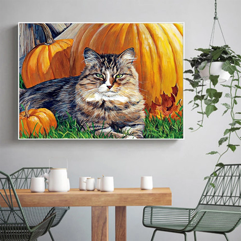 Алмазная живопись HUACAN с изображением животных, кота, домашний декор 5D, алмазная вышивка сделай сам, мозаика, тыква, вышивка крестиком, настенные наклейки