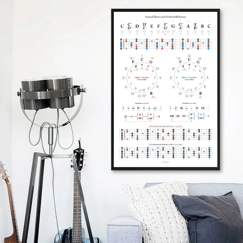 Теория гитары, справочные плакаты и принты, музыкальный любовник, г...
