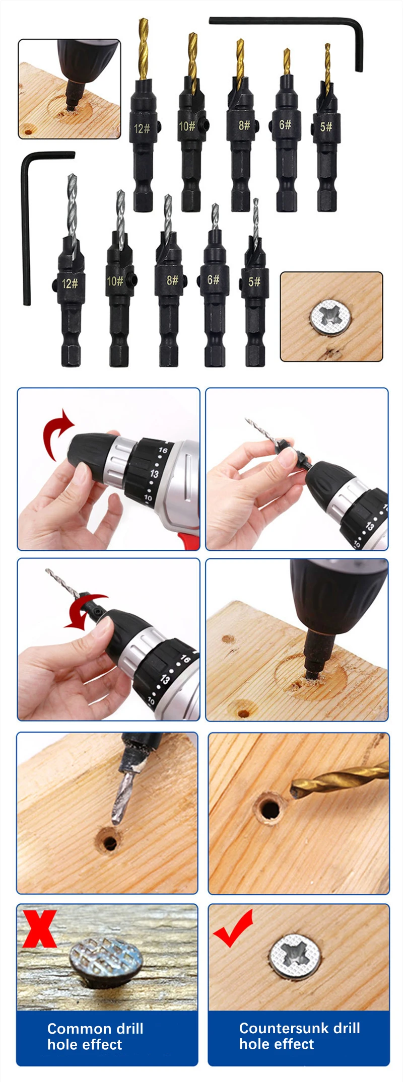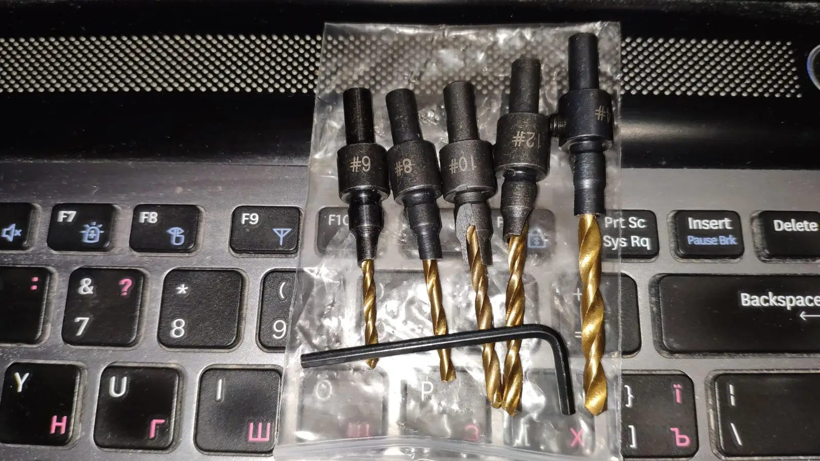 доставка без повреждений и в полной комплектации за 12 дней. Протестировал на еловой доске . Зенковка под мелкие шурупы. СВЕРЛА И ЗЕНКОВКА сразу забиваются стружкой, поэтому после каждого сверления приходится их чистить. Все сверла имеют биения. Отцентрировать не удалось - за это снял одну звезду.