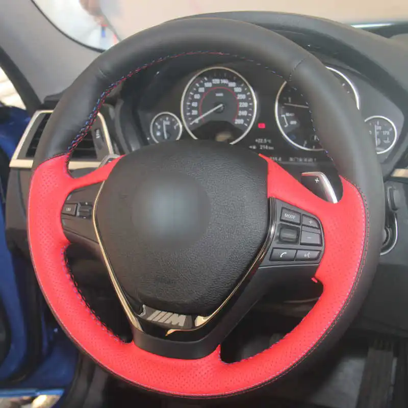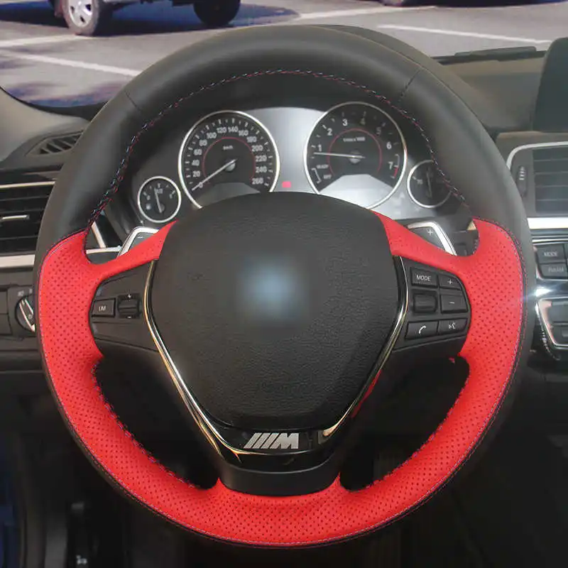 Чехол на руль из черной замши и красной перфорированной кожи для BM...