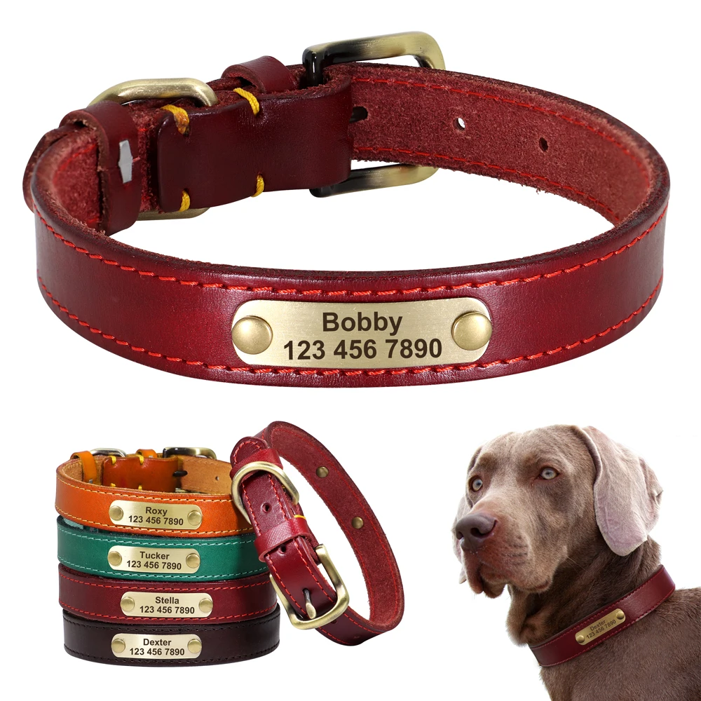 Кожаный ошейник для собак на заказ, прочные Индивидуальные Ошейники...