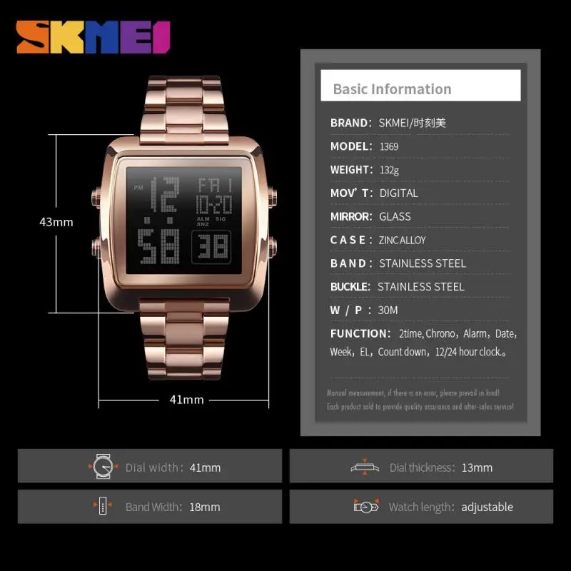 Часы SKMEI женские цифровые, спортивные электронные модные светодиодные из нержавеющей стали с обратным отсчётом