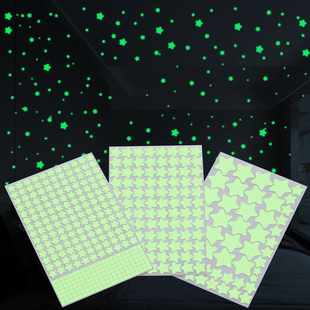 Самоклеящиеся флуоресцентные наклейки 3D в виде пузырьков, звезд, Луны, точек, светящиеся настенные наклейки, наклейки на стену для детской комнаты