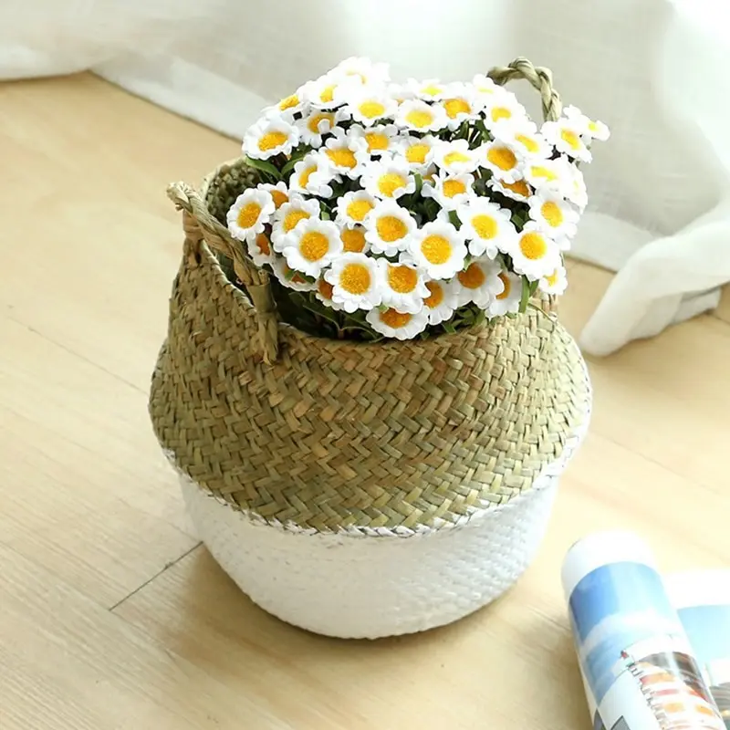 Складная корзина для хранения, креативные натуральные морские водоросли, ротанговая солома, плетеные складные корзины для цветов, садовый плантатор, поставщик белья