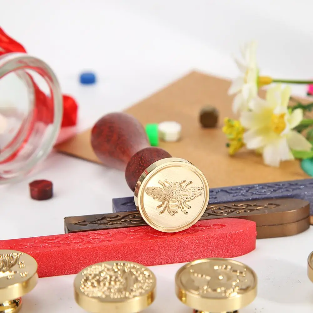 Восковой штамп с изображением пчелы, ручка из розового дерева под старину, металлический конверт, Личные документы, инструменты для свадьбы, ручной работы, сделай сам