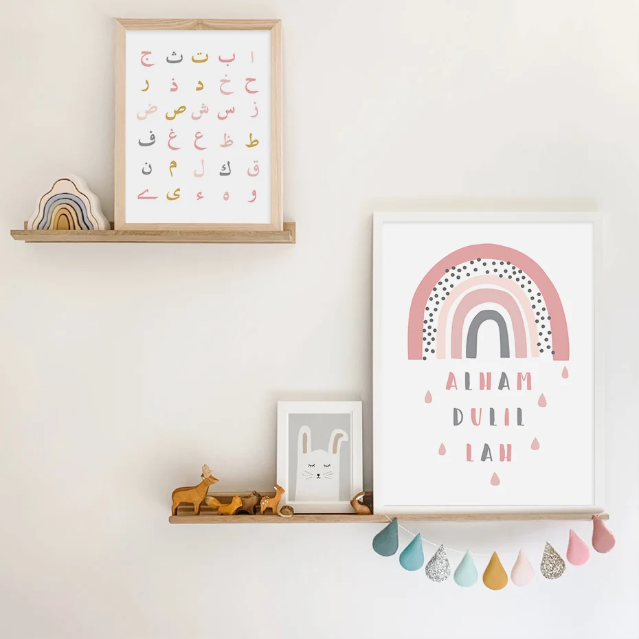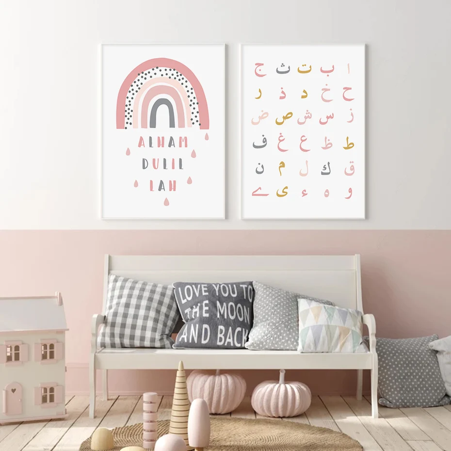 Исламский Bismillah звезды облака розовый постер для детской комнат...