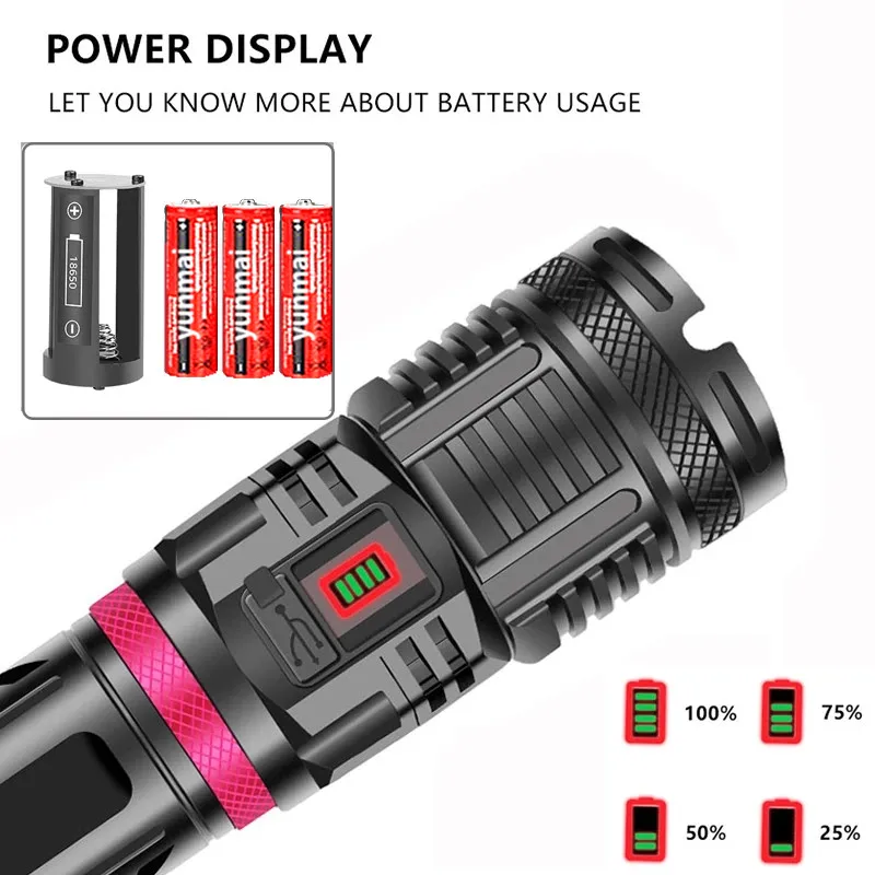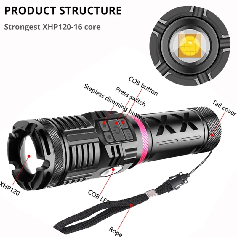 Светодиодный фонарик XHP120 16 ядер, 4 цвета, перезаряжаемый фонарь с аккумулятором 3x1865 0