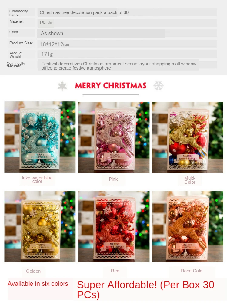 30 шт./компл. Рождественский шар украшения для рождественской елки Декор шар-безделушка подвесные для рождественской свадьбы украшения дома Pождество Navidad