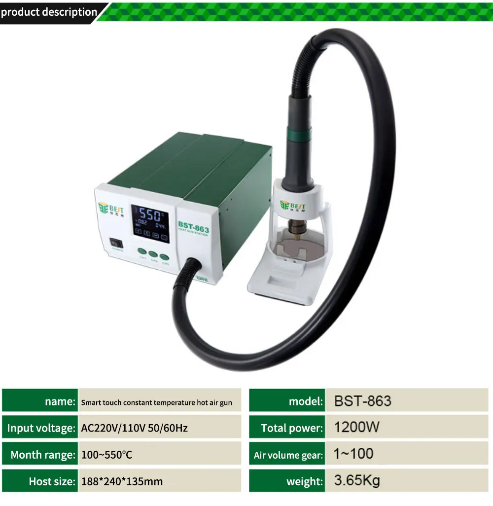 Лучшая BST-863 паяльная станция 1200 Вт, Интеллектуальная паяльная ...