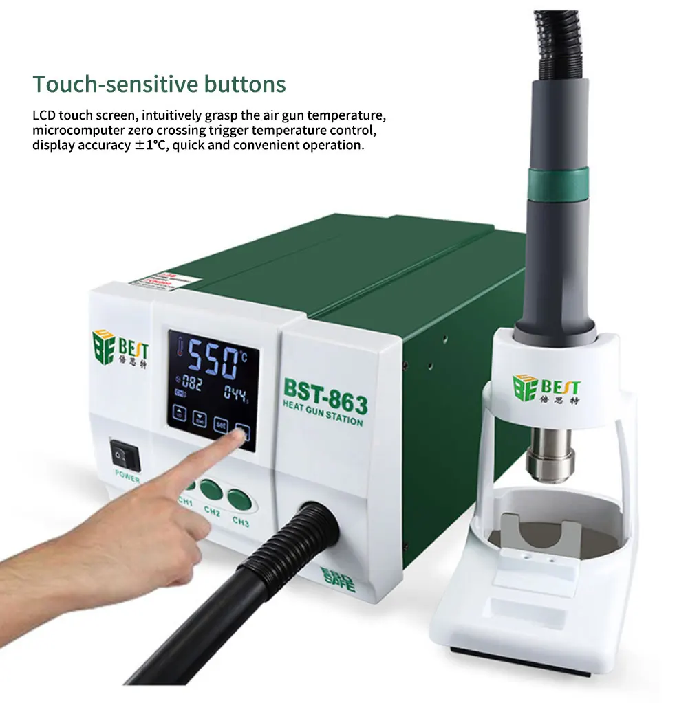 Горячая воздушная сварочная платформа 1200 Вт цифровая ЖК-Сенсорная паяльная станция с постоянной температурой с функцией памяти BST-863
