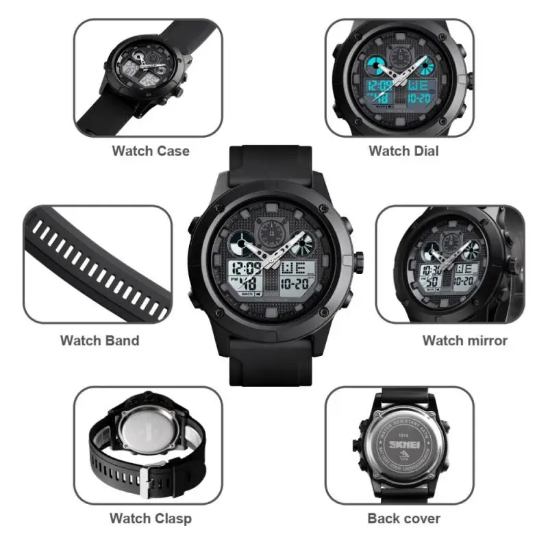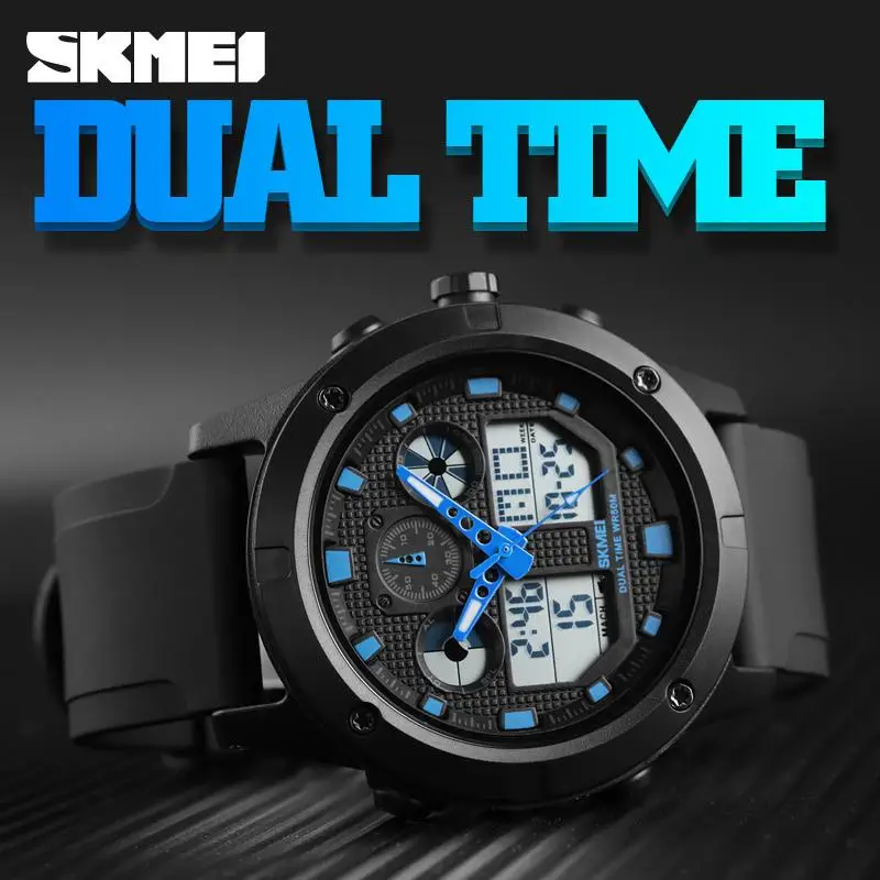 Часы наручные SKMEI мужские светодиодные, Брендовые спортивные цифровые водонепроницаемые светящиеся в стиле милитари, с двойным дисплеем, 5 бар