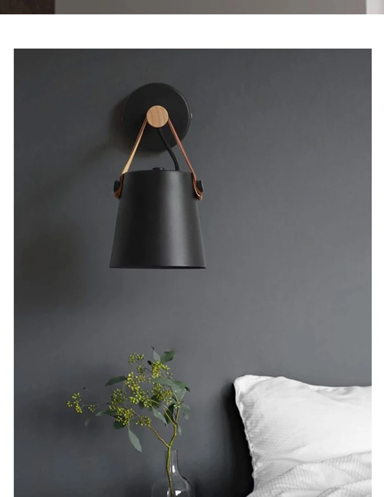 Современные светодиодсветодиодный Настенные светильники 5 Вт, прикроватный дизайнерский светильник для гостиной в скандинавском стиле с ремнем, Деревянные Настенные светильники E27 110-240 В