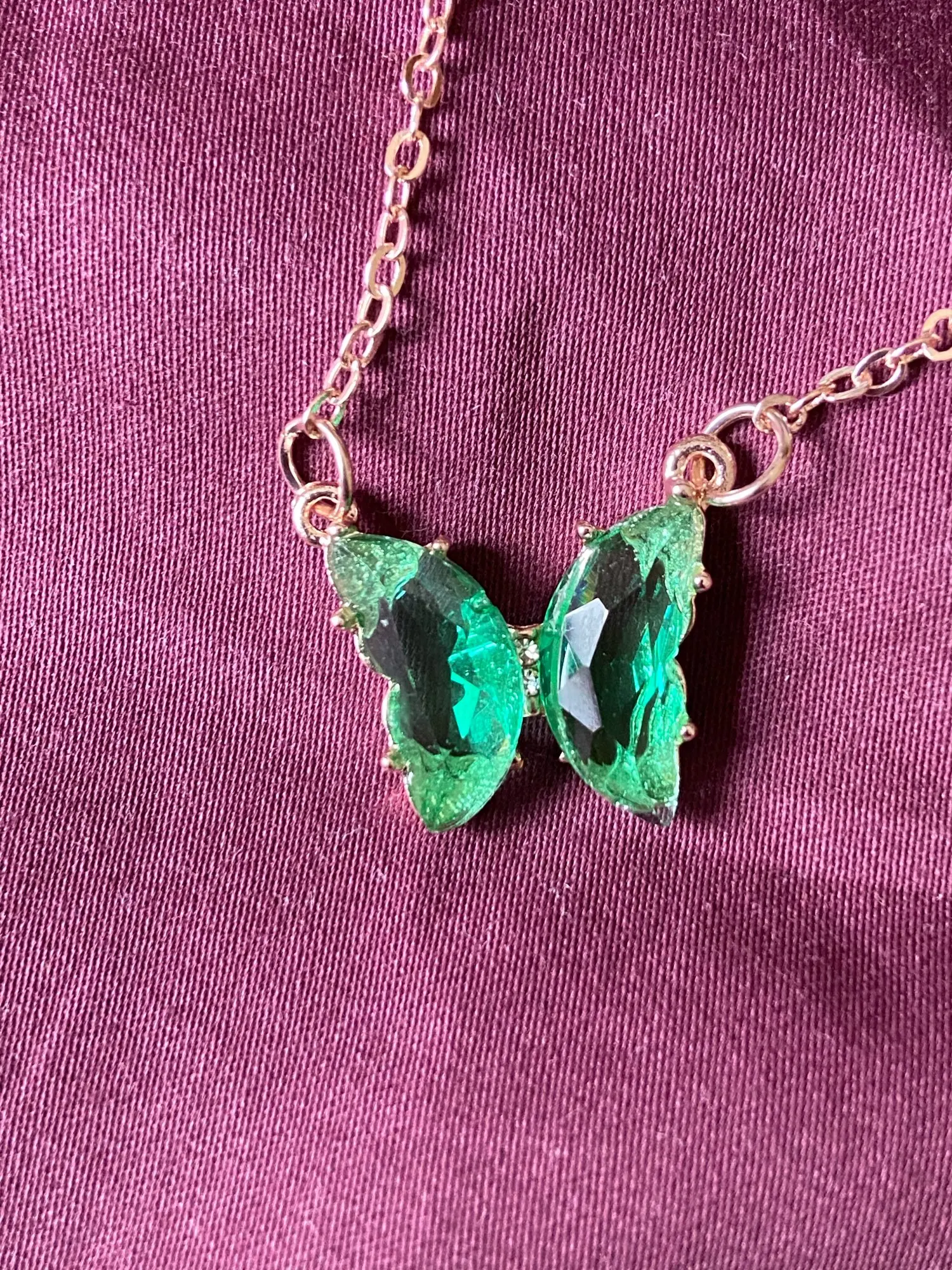 Я купил сочетающееся зеленое кольцо и ожерелье с бабочкой, и хотя изображения имеют немного другой оттенок зеленого для eachother, оттенок такой же в реальной жизни. Пришел в течение 2 недель. Просто немного пыльно, но полировать его влажной тканью или тканью будет хорошо!