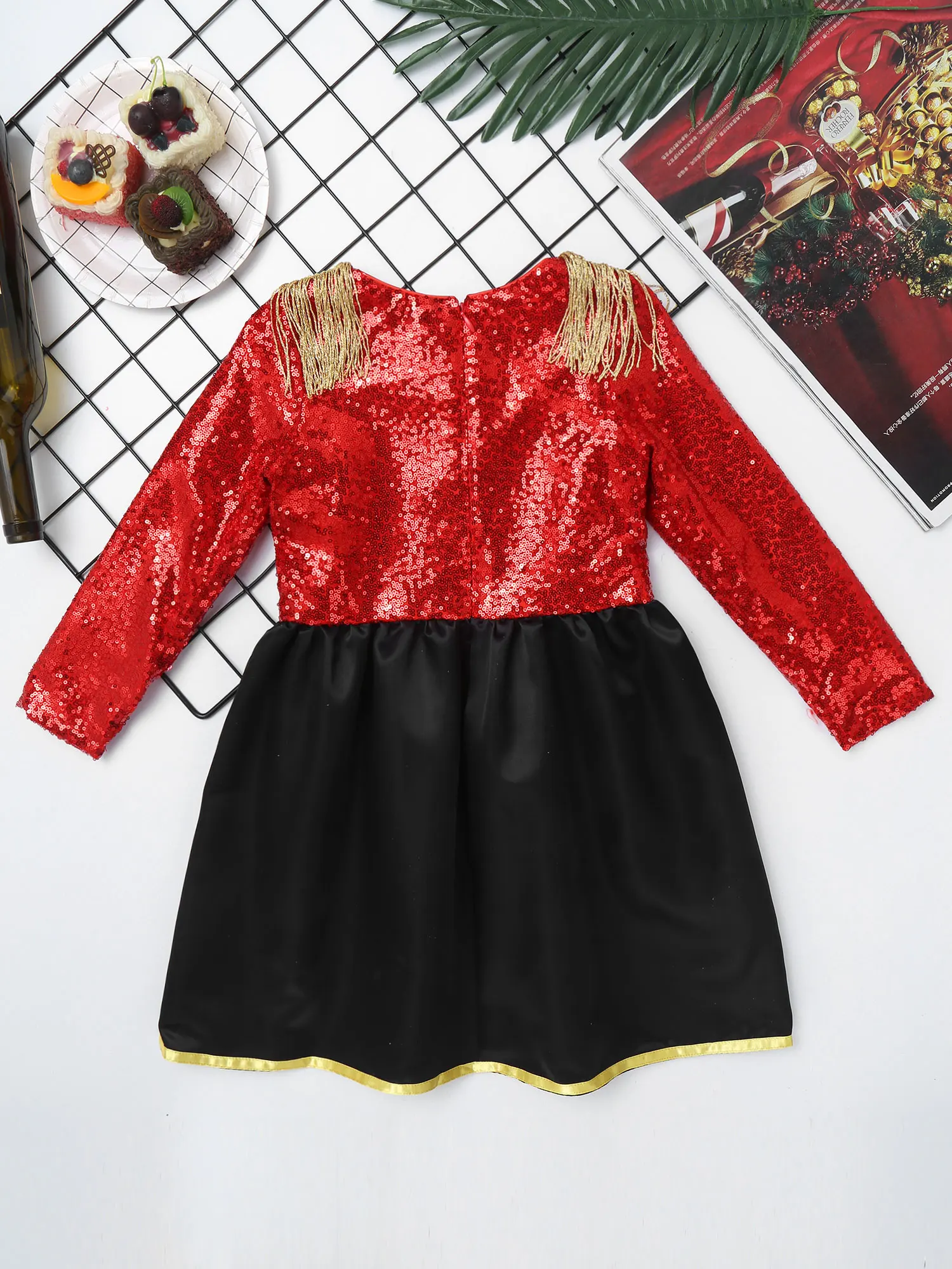 Блестящее платье с пайетками для девочек 5-12 лет с мини-топом и головной убор для волос с головным убором, Детский костюм на Хэллоуин для костюмированной вечеринки, вечерние костюмы для выступлений, костюм цирка
