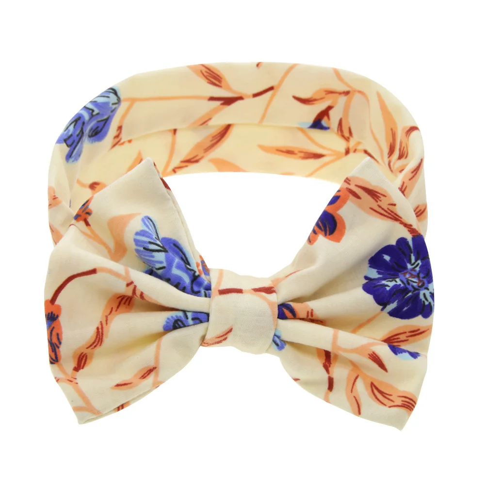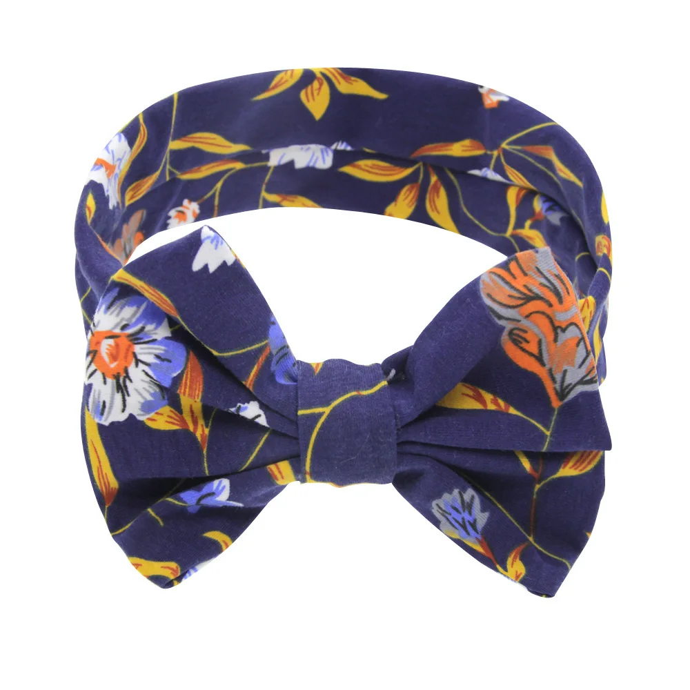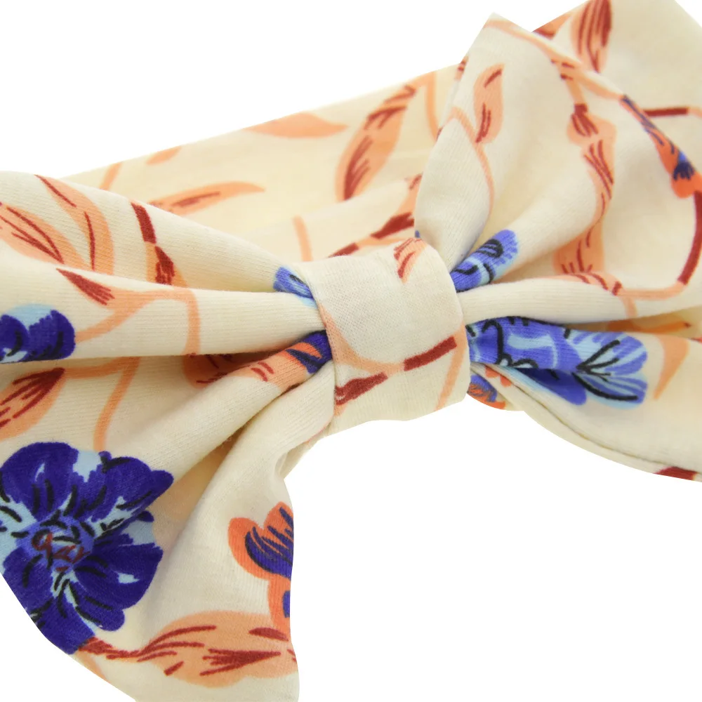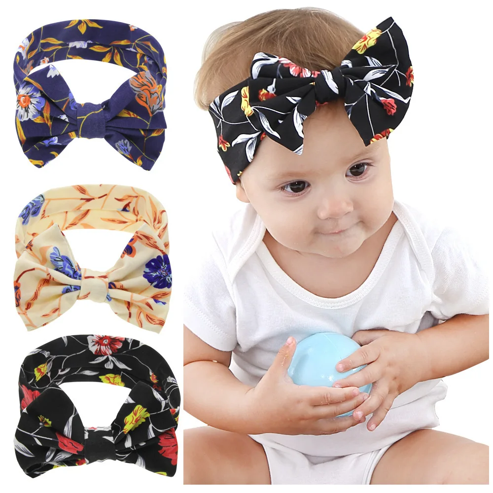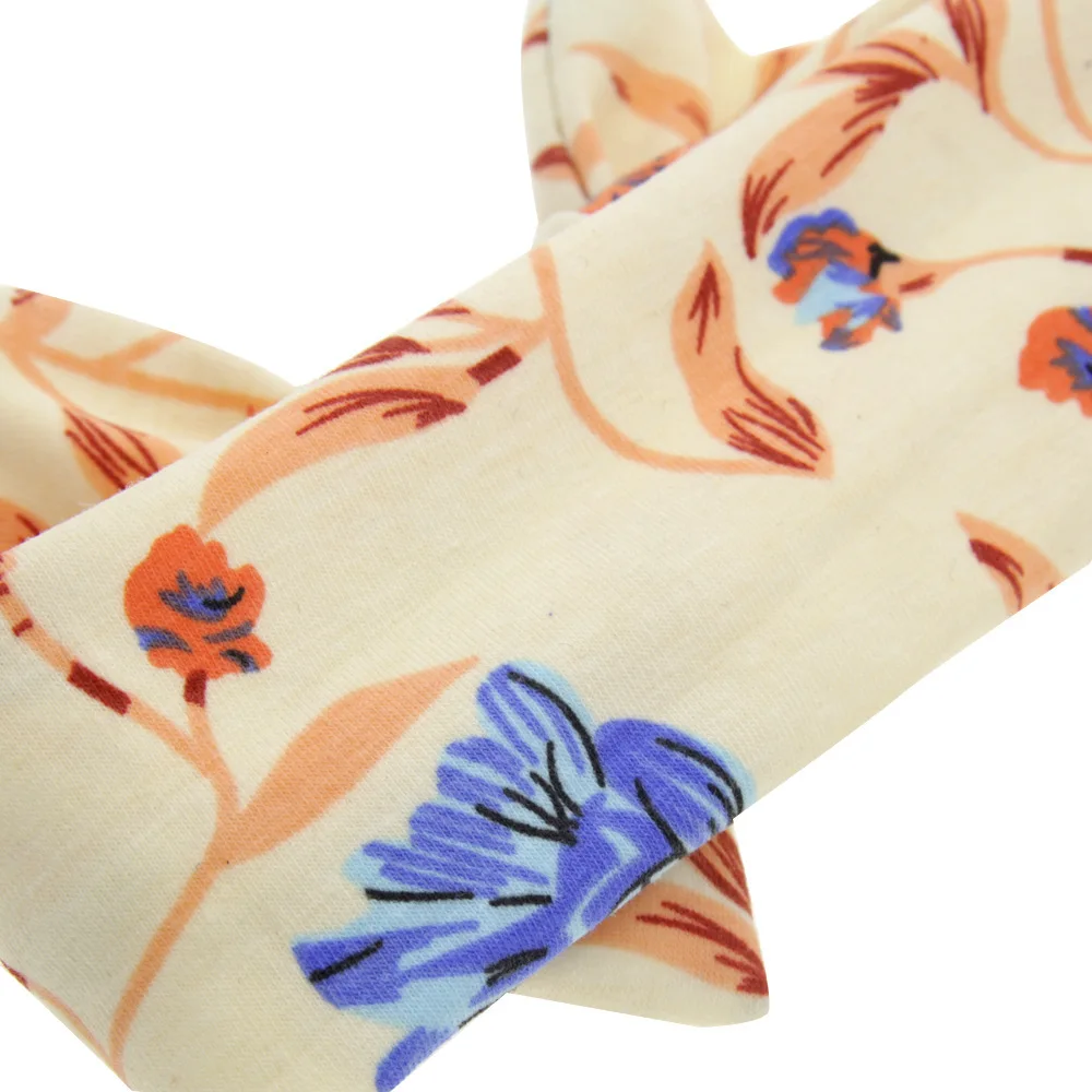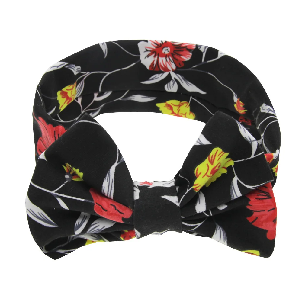 Повязка на голову для новорожденных девочек, с принтом в виде цветов, с заячьими ушками и бантом, Младенцы Малыши Дети