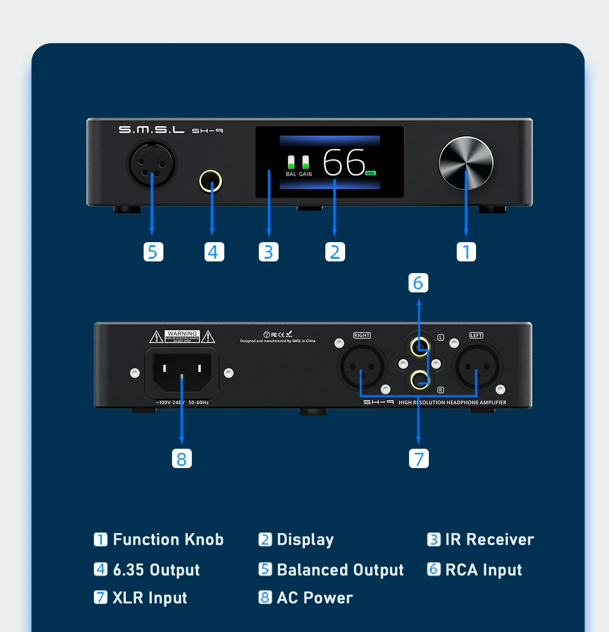 Усилитель для наушников SMSL SH-9, технология THX AAA, вход RCAXLR 6,35 мм, сбалансированный усилитель для наушников SH9