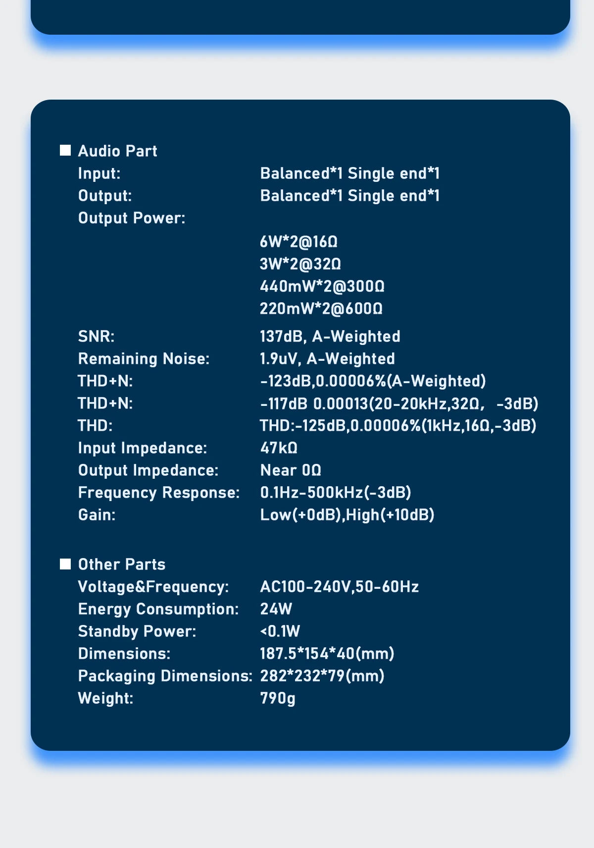 Отличный звучащий усилитель для наушников. Нет обнаруженного hiss на любом из моих IEMs или наушников. Много мощности и действительно хороший регулятор громкости. Выглядит потрясающе с SU-9 DAC. Это устройство имеет фантастический дисплей информации и меню, которые просты в использовании. Доставка прибыла менее чем за неделю в Австралию.