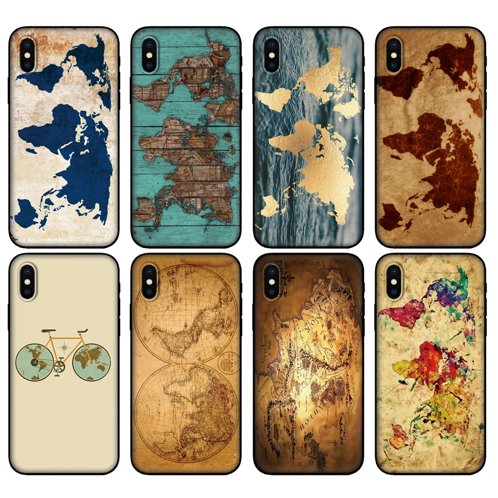 Черный ТПУ чехол для Xiaomi Redmi 7A 8 8A 9 9A 9C, чехол для Redmi Note 8T 8 Pro T Note 9 9S 9 Pro, Винтажный чехол с дорожной картой мира