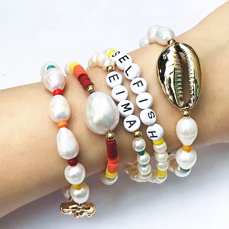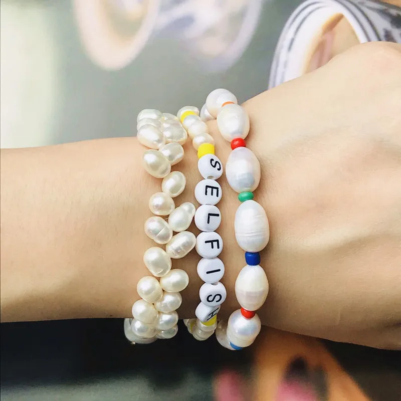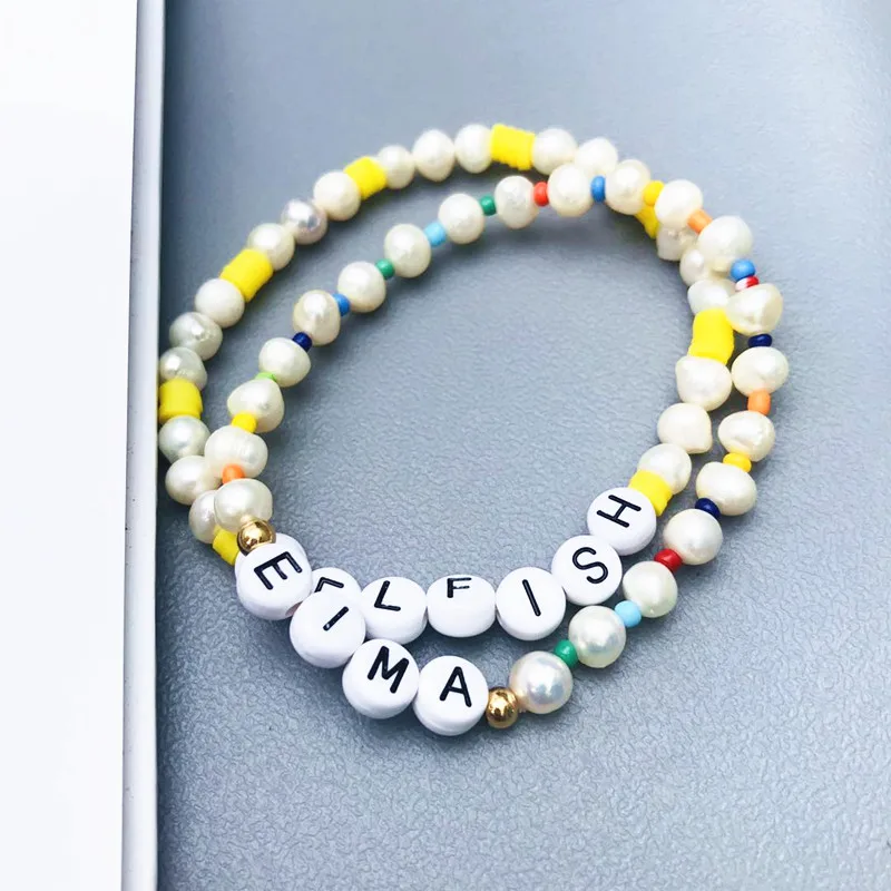 Индивидуальный Радужный Браслет, очаровательные ювелирные изделия для друзей ручной работы, натуральный жемчуг, эластичный браслет, мужские бусы с алфавитом, именной браслет