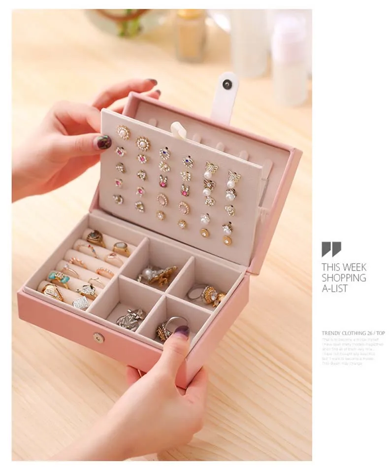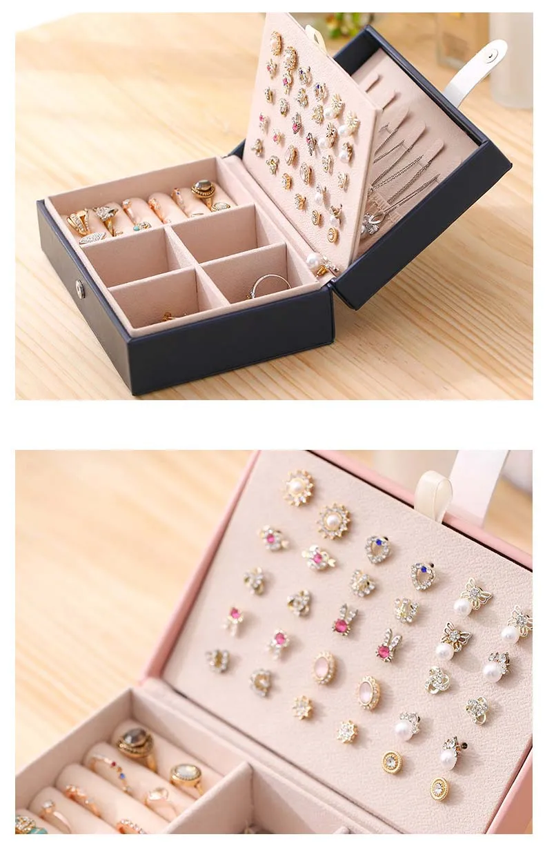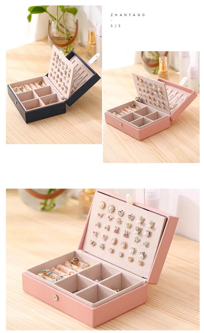 Шкатулка для ювелирных изделий из ПУ кожи, универсальный органайзер для колец и колец, дорожная портативная коробка для хранения кнопок