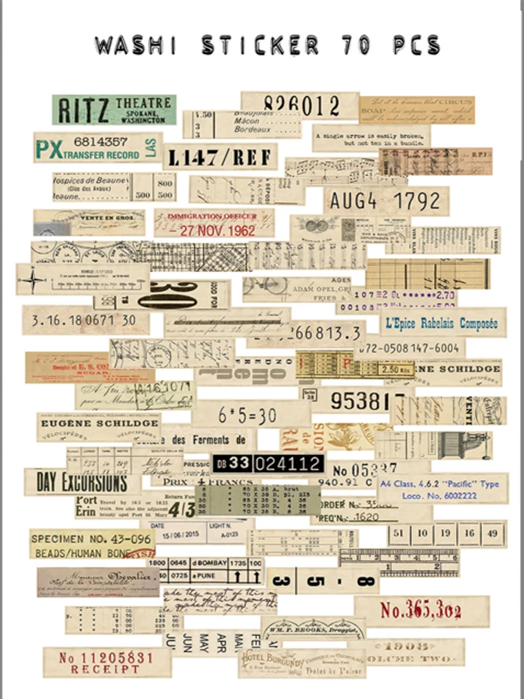70 шт Ретро билет винтажные английские Васи с клейким декором дневник план наклейки для скрапбукинга этикетки стационарные принадлежности
