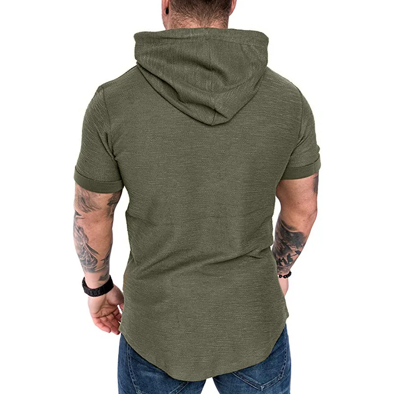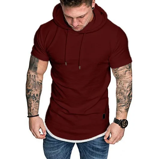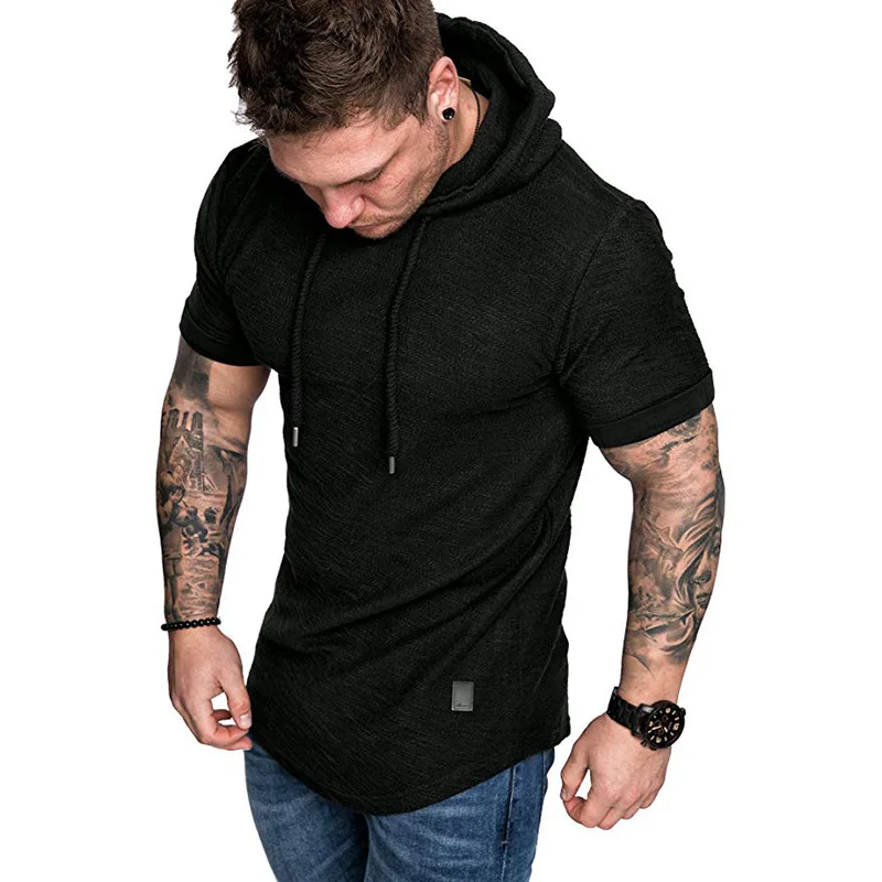 Футболка мужская с капюшоном, модная короткая рубашка в стиле пэчворк, приталенная, с коротким рукавом, уличная одежда на лето