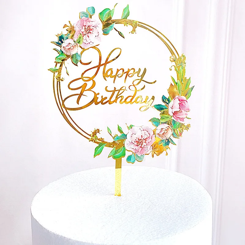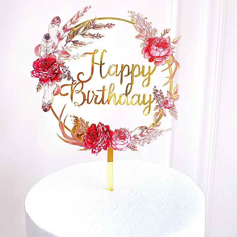 Новые акриловые топперы для торта на день рождения Ins, милые цветы...
