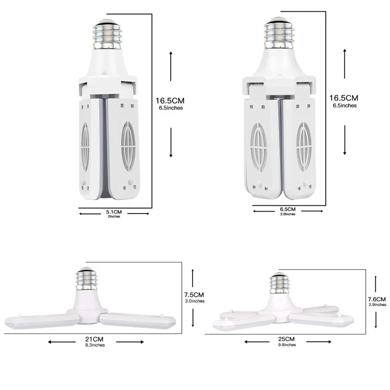 Складной гаражный светильник E26, многофункциональная Водонепроницаемая энергосберегающая лампа холодного белого и теплого белого света, тричетыре листа