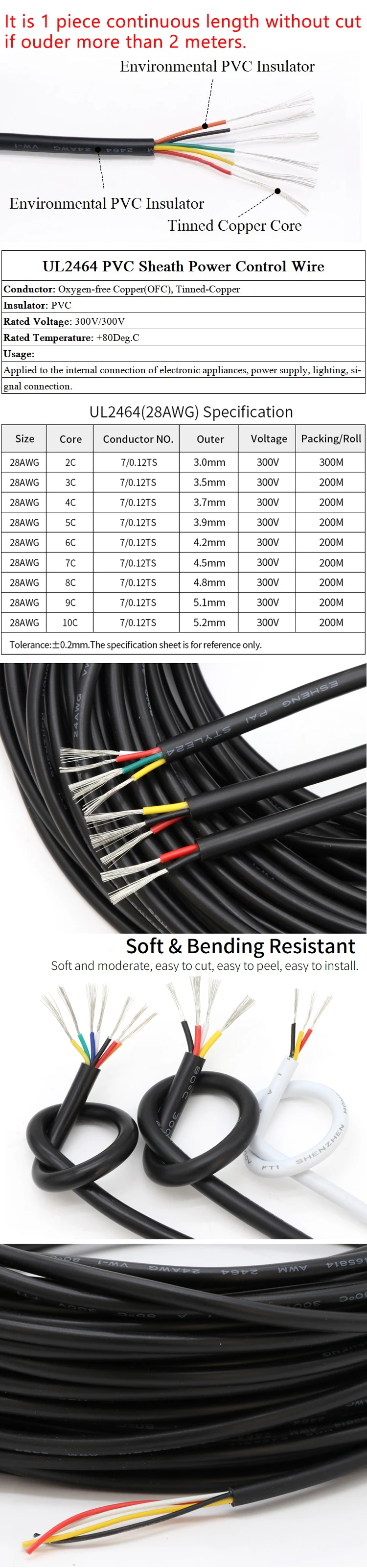 UL2464 сигнальный провод, 24AWG 2 3 4 5 6 8 10 ядер, ПВХ изоляционн...