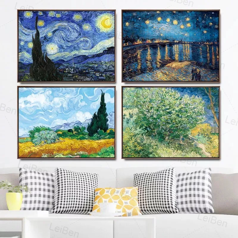 Голландский послеимпрессионистский художник Ван Гога, настенный плакат, пейзаж, холст, живопись, домашнее украшение, гостиная, Безрамная роспись