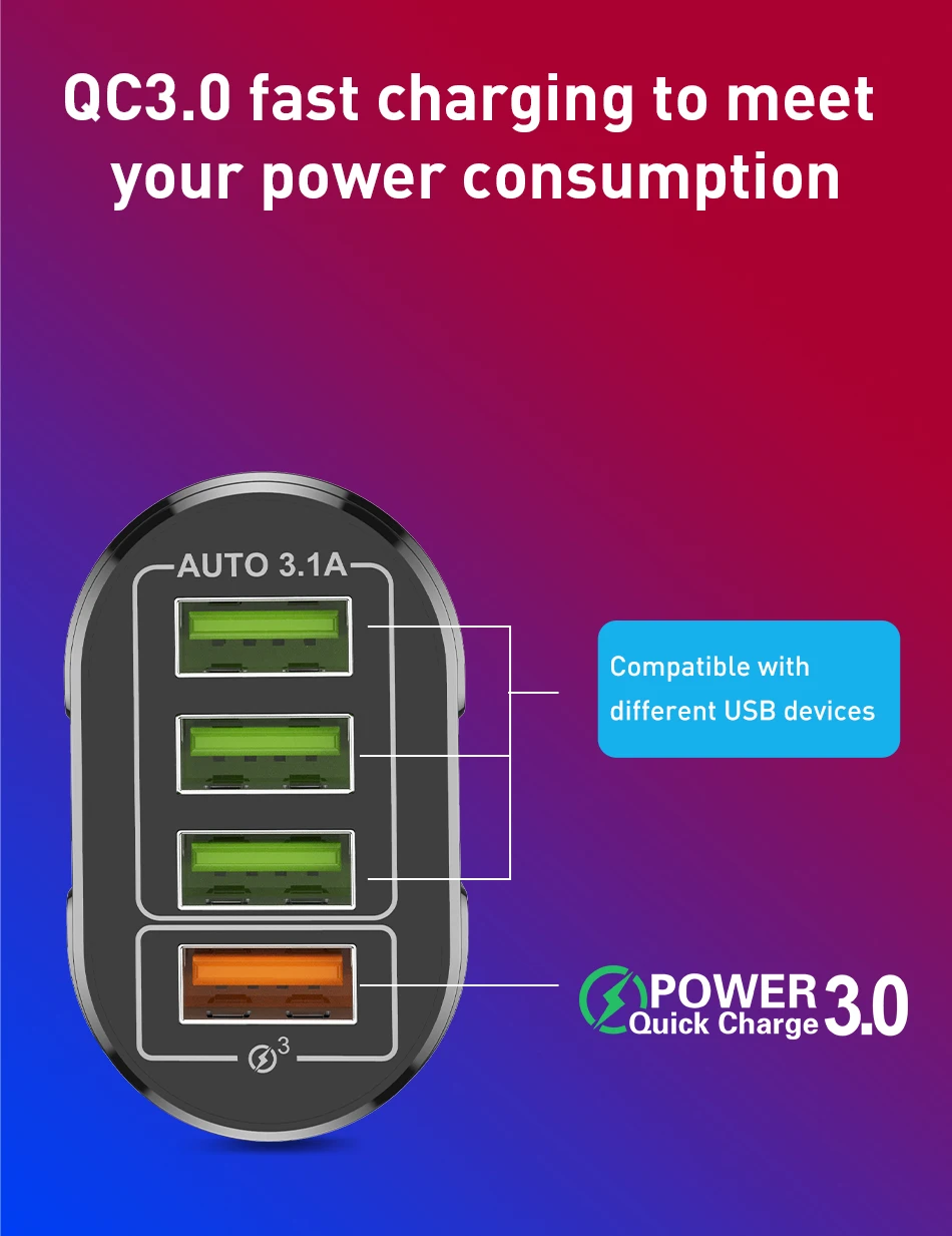 Сетевое зарядное устройство USLION с 4 USB-портами и поддержкой быс...