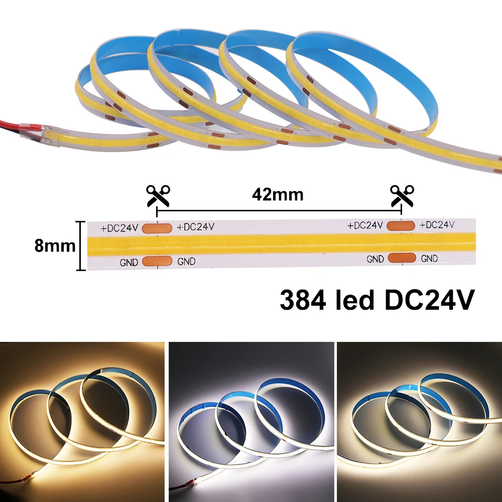 Светодиодная лента COB, 12 В, 24 В, 384 светодиодный одовм, с регул...
