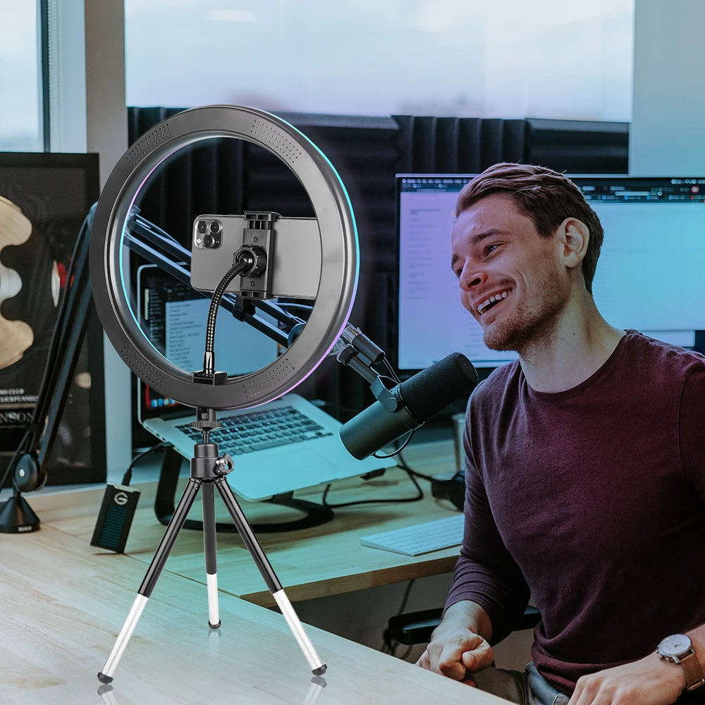 1x10 дюймов кольцевой светильник (RGB)1 x зажим для телефонаШаровая Головка-1 шт.