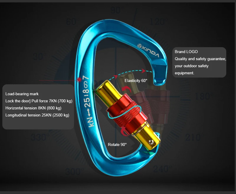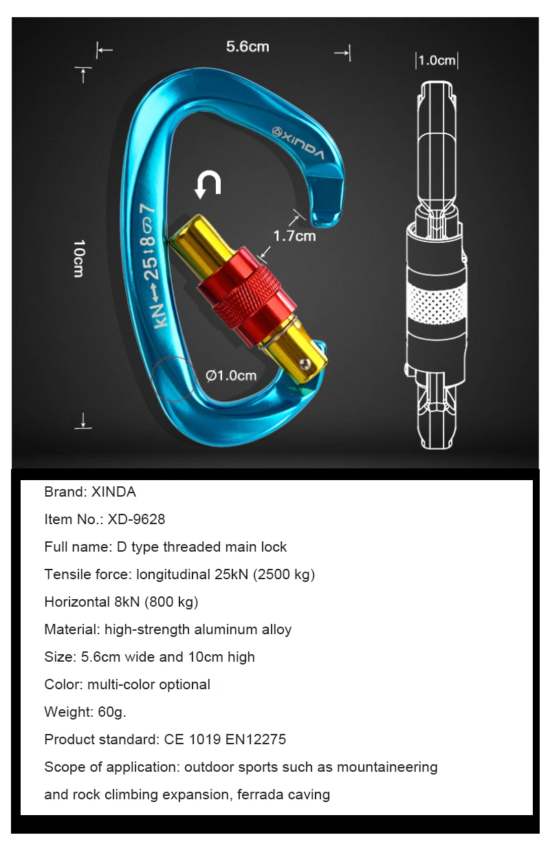 Наружная Пряжка для альпинизма, альпинизма, основной замок, быстроподвесной замок типа D, безопасный замок, оборудование для альпинизма, 2500 кг
