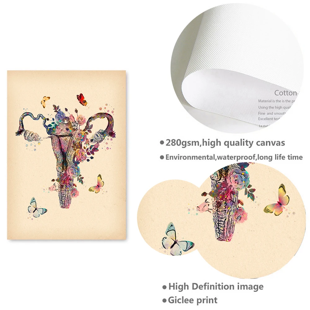 Цветочный принт для женщин, рисунок на стене, подарок акушерке, гинеколог, медицинское образование, плакат, холст, картины для гостиной