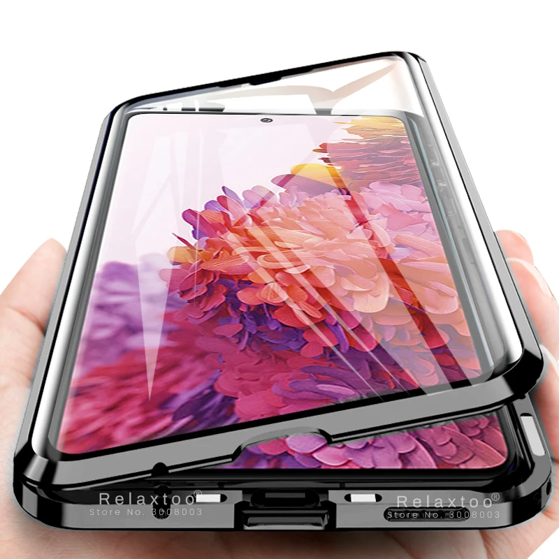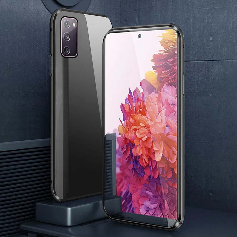 Двухсторонний стеклянный (Передний + черный) металлический магнитный чехол для Samsung Galaxy S20 FE