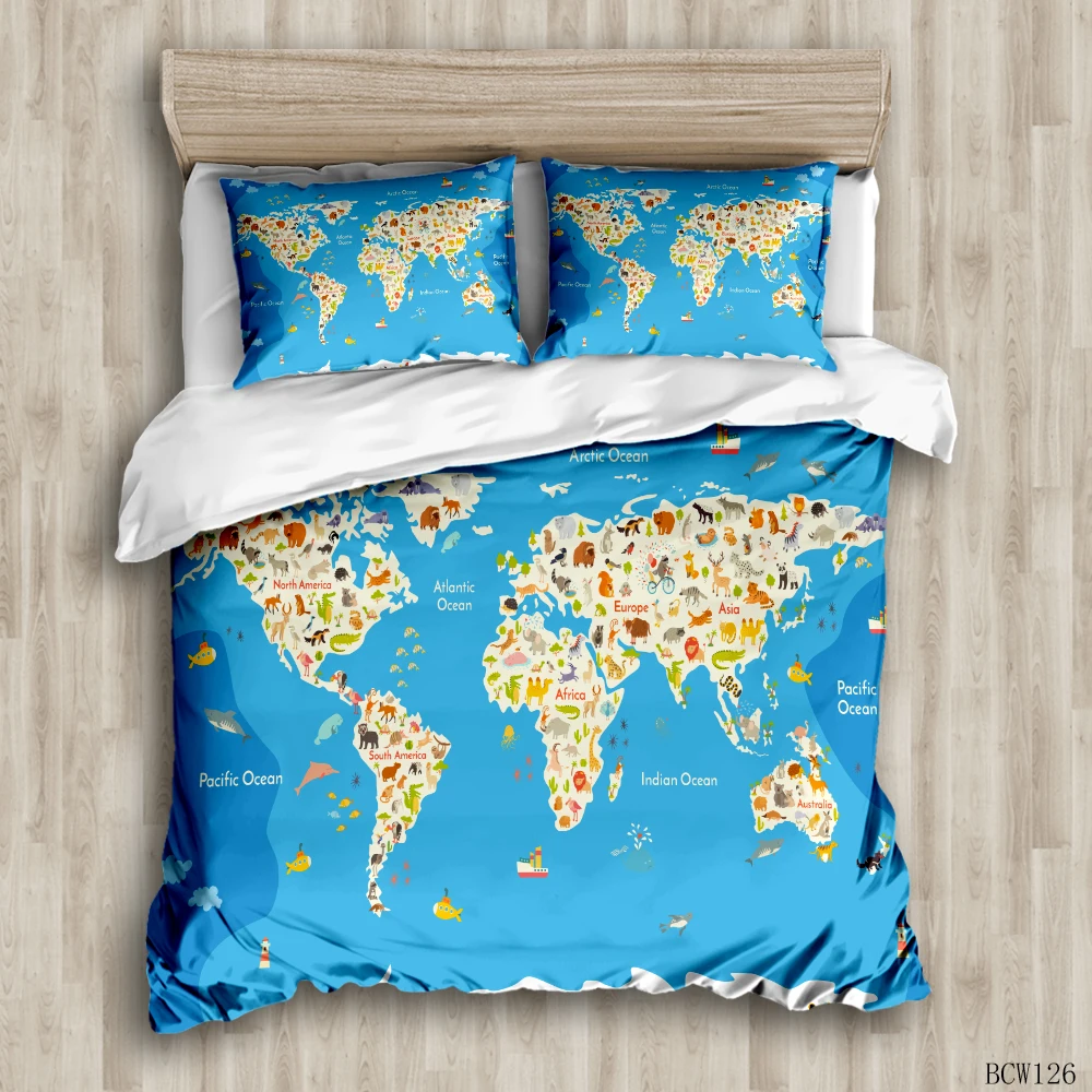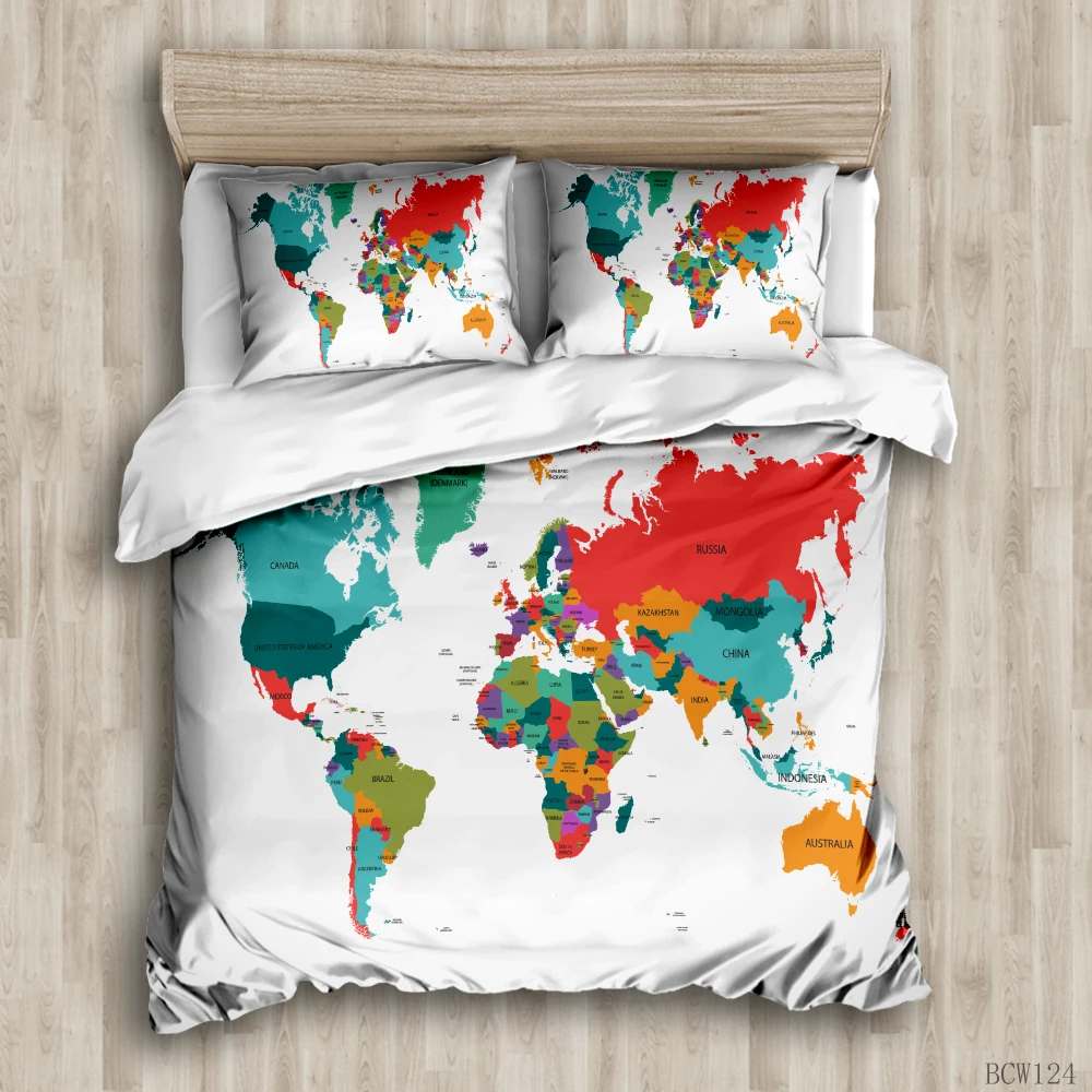 Зеленая карта мира красочные пододеяльник комплекты изготовленные на заказ постельное белье Комплекты постельного белья с наволочкой king Размеры постельное одеяло крышки