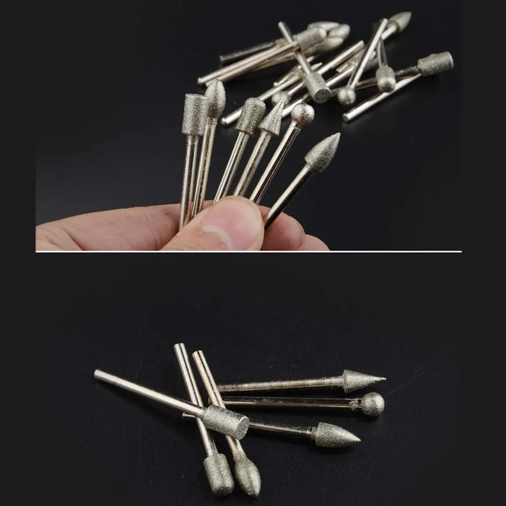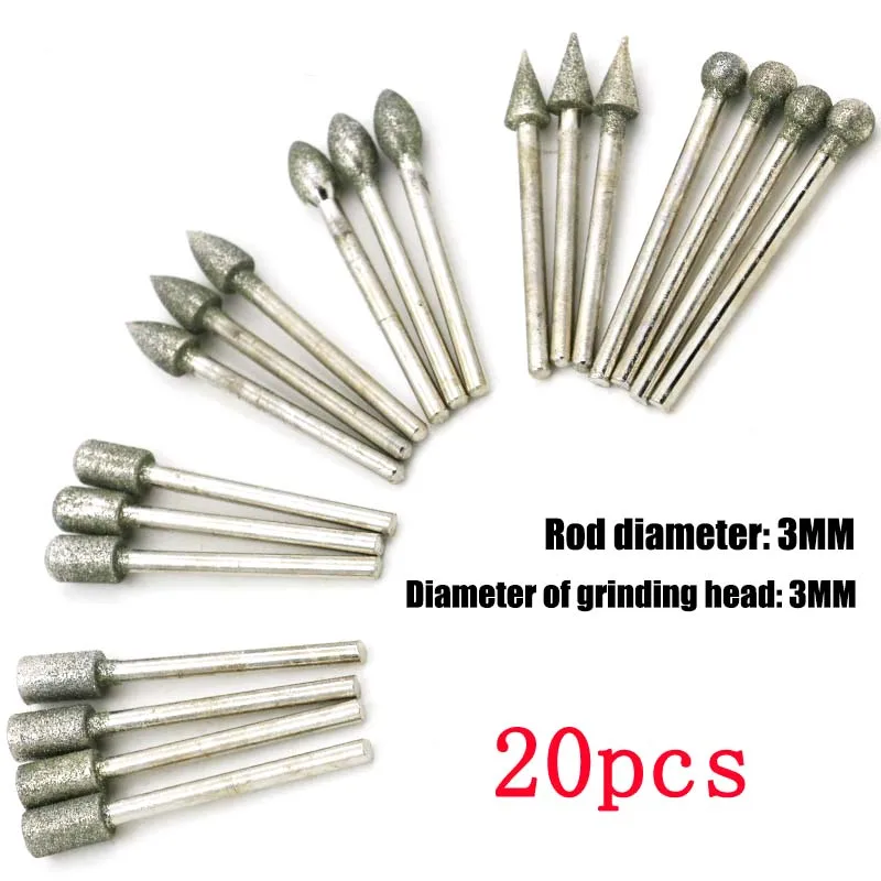 20 штук 3 мм бриллиант точка биты аксессуары для головы Dremel для конических фрез шлифовальная игла резьба машины полировки ювелирных изделий установлен мини-дрель инструмент